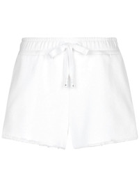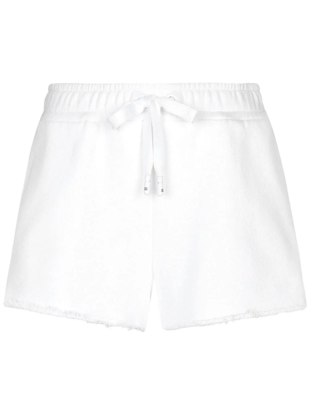 straight-leg shorts Highlights - Off-white - Cotton - Jersey texture - Elasticated drawstring waistband - Straight leg - Logo stamp to the front - Frayed hem Made in Italy Composition Cotton 100%