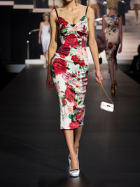 The floral pattern on Dolce & Gabbana's dress is so vivid, it almost feels like you're wearing an oil painting. Made from satin for a close fit, it has a pointed bustier and pencil skirt. Match your lipstick to one of the blooms.