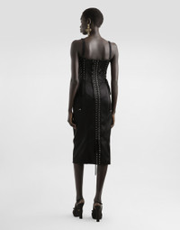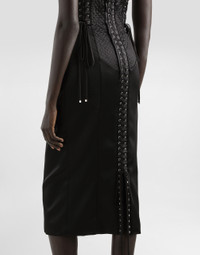 The Spring/Summer 2025 Women’s Collection is celebrating Italian beauty through bold and charismatic femininity. The 50s-inspired lingerie is the star, intermingling with fitted dresses, corsets and oversize trench coats. The iconic jackets have been updated with cropped cuts and modern inserts, while the floral prints add a romantic edge. The eveningwear shines with light fabrics and crystals, accompanied by look-defining accessories, from iconic bags to the cross earrings. Strapless satin dress with corset details: • Black • Sweetheart neckline • Sleeveless • Stretch silk satin lining • Rear zipper and hook-and-eye fastening • The piece measures 75 cm from the waist down on a size IT 40 • The model is 175 cm tall and wears a size IT 40 • Made in Italy External composition: 65% Acetate 29% Polyamide 6% Spandex Internal composition: 92% Silk 8% Spandex