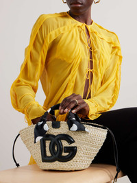 EDITORS'NOTES Dolce&Gabbana's tote is perfect for the beach and beyond. It's crafted in Italy from raffia, which makes a striking contrast against the polka-dot satin handles and lining. The front is embellished with the house's iconic initials in smooth leather. SIZE & FIT This item’s measurements are: - Min. Strap Length: 118cm / 46.5in - Handle Drop: 7cm / 2.8in - Depth: 16cm / 6.3in - Max. Strap Length: 127cm / 5E+1in - Height: 16cm / 6.3in - Width: 36cm / 14.2in DETAILS & CARE - Raffia, black and white satin, black leather (Calf) - Two top handles, detachable adjustable shoulder strap - Internal zipped pocket and card slot - Satin lining - Drawstring top