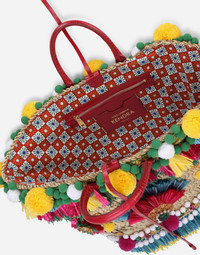 Craftsmanship and the handmade are the keys to this collection, which has been entrusted to the skilled hands of expert artisans, able to make every piece unique. This Kendra bag is for all those people who do not want to sacrifice elegance when vacationing in the most exclusive locations, which they won't have to do thanks to its natural-colored woven straw design with multi-colored embellishment: • Top handles in crocodile flank leather • Printed fabric lining • Item comes with a branded dust bag that matches the item’s theme • Measurements: 21 x 60 x 28 cm - 8.3 x 23.6 x 11 inches • Made in Italy Care And Details External composition: 60% Straw 20% Calfskin 10% Caiman 5% Metallic Fibre 5% Nylon Internal composition: 90% Cotton 10% Caiman