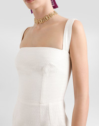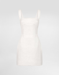 An elegant and sophisticated dress, perfect for a cocktail party or a special evening. This white dress offers a mix of comfort and style, thanks to its stretch mat fabric workmanship that enhances the feminine silhouette. Stretch mat dress: • White • The model is 175 cm tall and wears size 40 IT • Made in Italy External Composition: 47% Cotton, 38% Viscose, 14% Linen, 1% ElastaneInternal Composition: 91% Silk, 9% Elastane