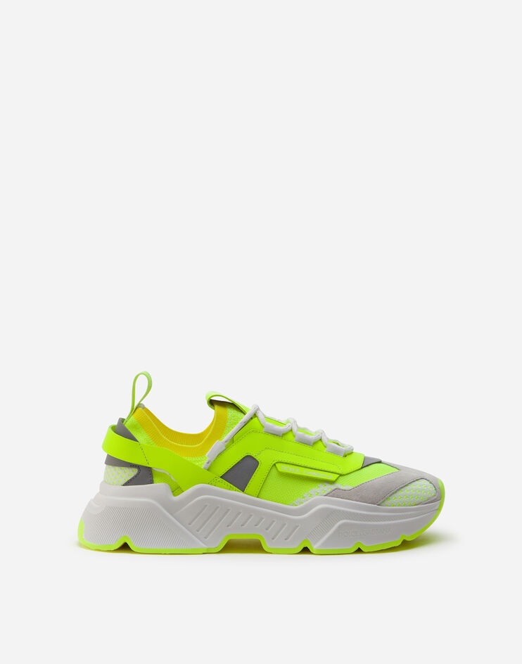 Dynamic and lightweight, the Daymaster sneakers offered in the Spring-Summer season are made of stretch knit fabric and leather inserts. Characterized by the super flex rubber sole and ideal to be paired with cropped pants or denim shorts: • Elasticated knit fabric upper • Logoed tubular laces • Back strap • Leather footbed with branded label • Rubber sole • Extralight rubber bottom • Made in Italy Care And Details External Composition: 50% Polyester 20% Calfskin 13% Rayon 10% Cotton 7% Acetate Internal Composition: 100% Lambskin