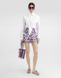 This shirt is a versatile and modern piece, perfect for enriching your wardrobe with a touch of contemporary elegance. Ideal for any occasion, it stands out for its refined design and the quality of its materials. Stretch poplin shirt: • White • Front that ties at the bottom • Back with folds • Long sleeves with square cuff • Buttonhole and button closure • The model is 175 cm tall and wears size 40 IT • Made in Italy External Composition: 97% Cotton, 3% Elastane
