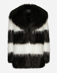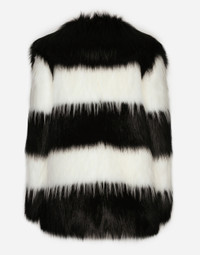 In the “WOMAN SS 24” Collection, the imagery of old Sicily interacts with the masculine, with sensual shapes, lace, nude tones and delicate overlays, to create pieces that move amid clean silhouettes, the elegance of the 1960s, the contrasts of black and white and luxurious textures. The designers are reworking their signature style and their iconic Sicilia black color to convey an aware, seductive and confident Sicilian WOMAN who is imbued with sensuality. Faux fur jacket with inlay stripes: • Multi-colored • Notched lapels • Long sleeves • Loose fit • Welt pockets • Stretch silk satin lining and faux fur inner piping • Hook-and-eye fastening • The piece measures 77 cm from the center back on a size IT 40 • The model is 175 cm tall and wears a size IT 40 • Made in Italy External composition: 72% Modacrylic 28% Polyester Internal composition: 74% Silk 20% Polyester 06% Spandex