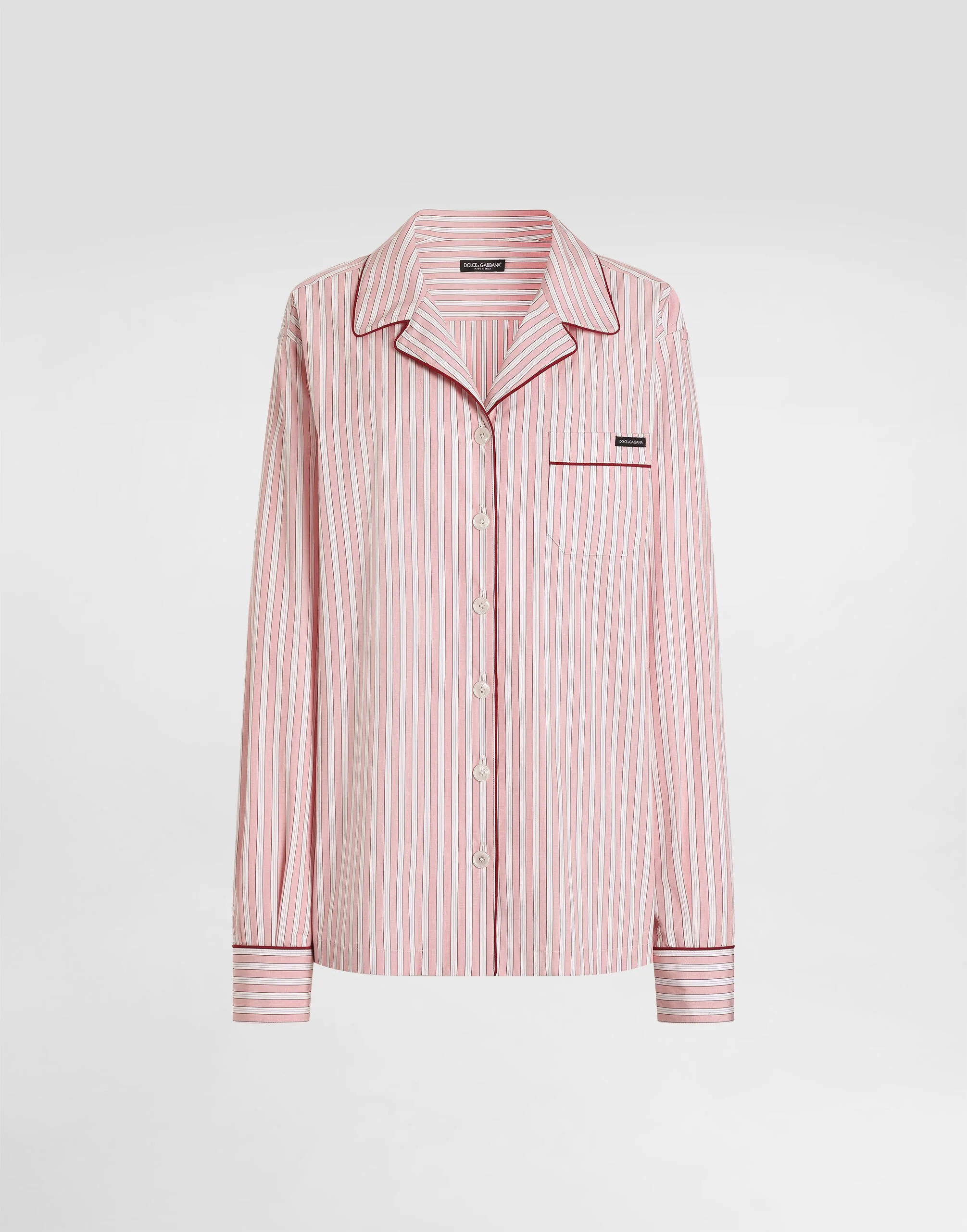 The SS26 Women's Fashion Show Collection is the result of a play of harmonious contrasts: masculine and feminine, day and evening, tailored and casual. Pyjamas take centre stage, paired with lingerie and formal garments. The play of layers and the mix of different influences contribute to expressing the relaxed attitude and unique, original style at the heart of the collection. This striped poplin shirt is an essential and versatile piece for any women's wardrobe. Perfect for a casual chic look, it easily adapts to different occasions thanks to its refined design. Striped poplin shirt: • Multi-colored • Vanity collar • Front pocket • Long sleeves with beveled cuff • Piping details • The model is 175 cm tall and wears size 40 IT • Made in Italy Relaxed fit. Consider taking a size smaller if you prefer a tighter fit. External Composition: 95% Cotton, 5% Silk