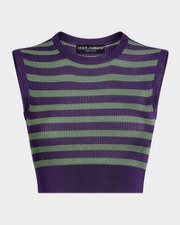- Dolce&Gabbana ribbed knit cardigan with a striped intarsia and DG embroidered back - Crew neckline; button front - Long sleeves - Fitted - Cropped length - Ribbed cuffs and hem - Rayon/cellulose acetate - Made in Italy