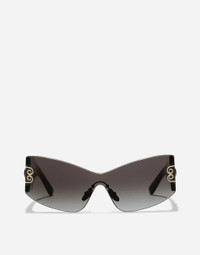 Shield model with wide temples enriched by a unique metal decoration with stones • Black acetate frame • Black acetate temples • Dark grey lenses • 100% UV protection • Size bridge- temple- lenses: x- 135 - x • Fitting: Adjustable nosepads • Packaging: Institutional • Made in Italy