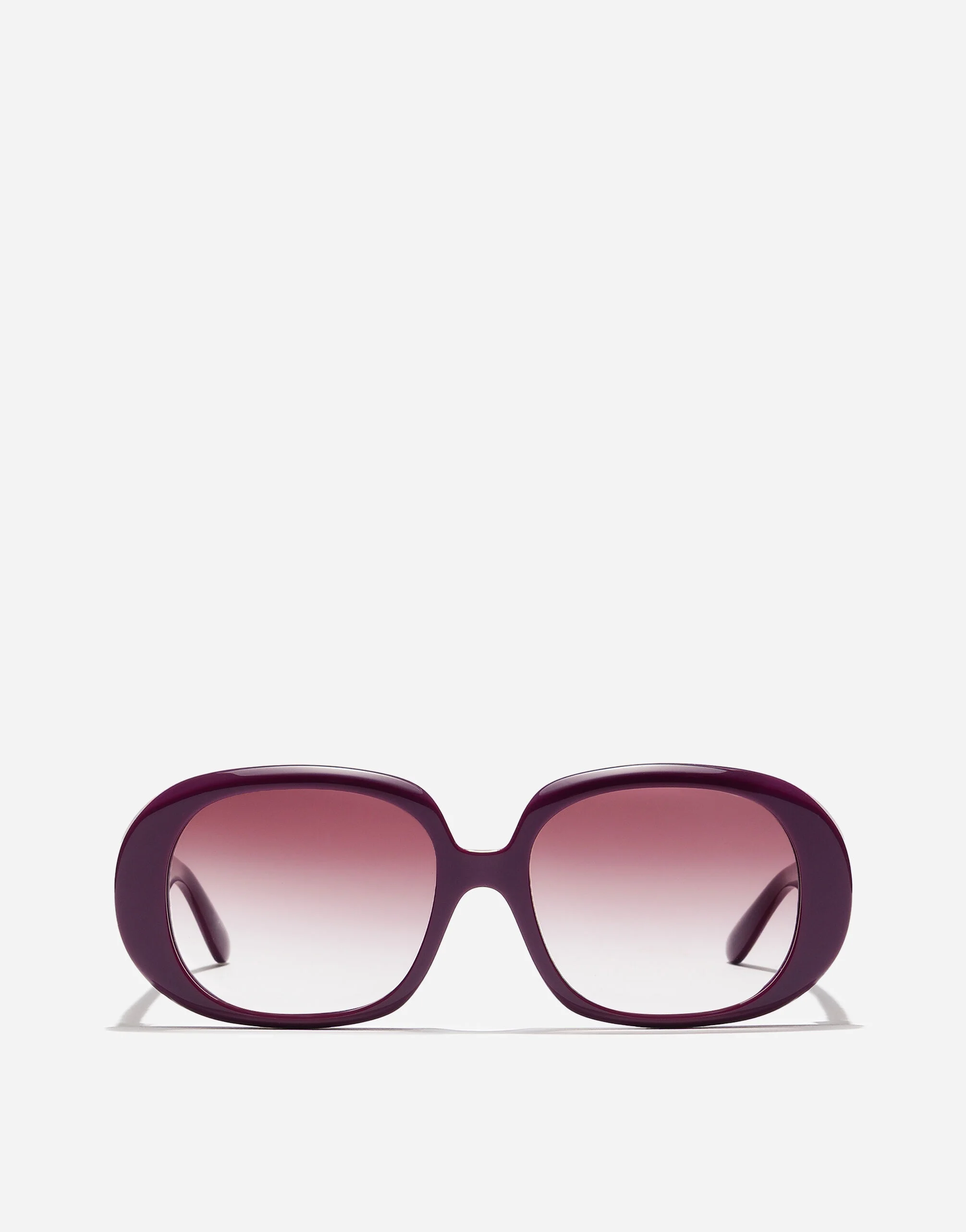 Oversized shape ffor this full acetate model of the new DG Violet Maiolica collection for a very feminine and elegant look. The iconic DG crossed embellish the temples. • Full grape acetate frame • Full grape acetate temples • Gradient dark violet lenses • 100% UV protection • Size bridge - temple - lens: 17 - 145 - 46.7 mm • Fitting: Standard • Packaging: Institutional • Made in Italy