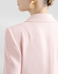 This jacket is an essential garment for the modern woman looking for elegance and timeless style. The refined design and attention to detail make it perfect for any occasion. Single-breasted jacket in stretch cady: • Pink • Lapel neckline • Fabric welt eyelets • 3 buttons • Long sleeves • Lined • The model is 175 cm tall and wears size 40 IT • Made in Italy External Composition: 50% Acetate, 47% Viscose, 03% Elastane Internal Composition: 92% Silk, 08% Elastane
