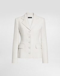 This Dolce jacket represents the essence of timeless elegance. Made of double crepe, it offers a sophisticated design and sartorial details that enhance the feminine silhouette. Dolce double crepe jacket: • White • Notch lapels • Melton undercollar • With buttons • Welt pockets and flap • Hemp basque and wadding on the sides • Fully adhesive • The model is 175 cm tall and wears size 40 IT • Made in Italy External Composition: 100% Virgin Wool Internal Composition: 92% Silk, 8% Elastane