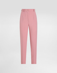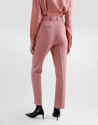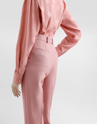 The Women’s DNA Collection is introducing a new side to femininity, which comes in shades of rose quartz, poised between sheerness and opacity, lightness and structure, formality and sensuality. Geometric Dolce Jackets, jacquard pajamas and floral brocade dresses intertwine with ultra-romantic designs. The DG print becomes an iconic statement, while Cordonetto lace and hints of Sicily Black embody the essence of a determined yet romantic femininity. Tailored double wool crepe pants: • Pink • Dolce high waist • Front slant pockets • Welt back pockets • Belt loops • Inner leg: 74 cm • Hem: 17 cm • Zipper and cannete-covered button with DG logo • The model is 175 cm tall and wears a size IT 40 • Made in Italy External composition: 100% Virgin Wool
