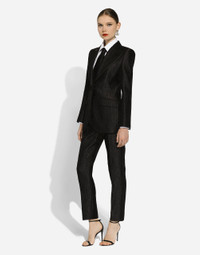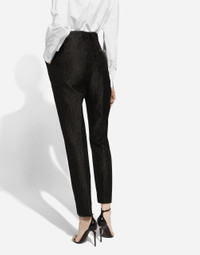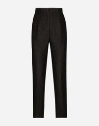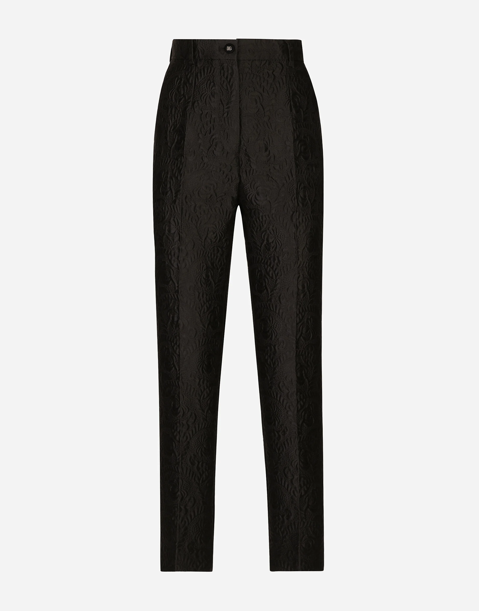 The DNA collection is distinguished by timeless shapes, bringing together three concepts: Sicilian flair, tailoring and sensuality. Nero Sicilia black and optical white predominate and pair with colors that catapult us onto the island of Sicily and make us dream. The designers channel the timeless wardrobe made up of creations that are instantly unmistakable in their simplicity, presenting us with sophisticated beauty loaded with meaning and symbolism that transcends fashion. Tailored quilted floral jacquard pants: • Black • Dolce high waist • Front slant pockets • Welt back pockets • Belt loops • Inner leg: 73 cm • Hem: 17 cm • Zipper and canneté-covered button with DG logo • The model is 175 cm tall and wears a size IT 40 • Made in Italy External composition: 64% Cotton 23% Polyester 13% Silk