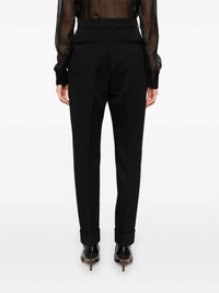 wool trousers Highlights - Black - Wool - Twill weave - Concealed fly and button fastening - Belt loops - Pressed crease - Two diagonal pockets to the sides - Two rear welt pockets - Straight leg - Turn-up hem Made in Italy Composition Wool 100% SIZE & FIT Model measurements Height 5 ft 10 in(1.78 m) Bust/Chest 33.85 in(86 cm) Hips 36.61 in(93 cm) Waist 26.77 in(68 cm) FittingInformation Designed with a cigarette cut, these trousers allow for a close fit at the waist and offer an unrestricted fit through to the ankle Made from a midweight non-stretch fabric