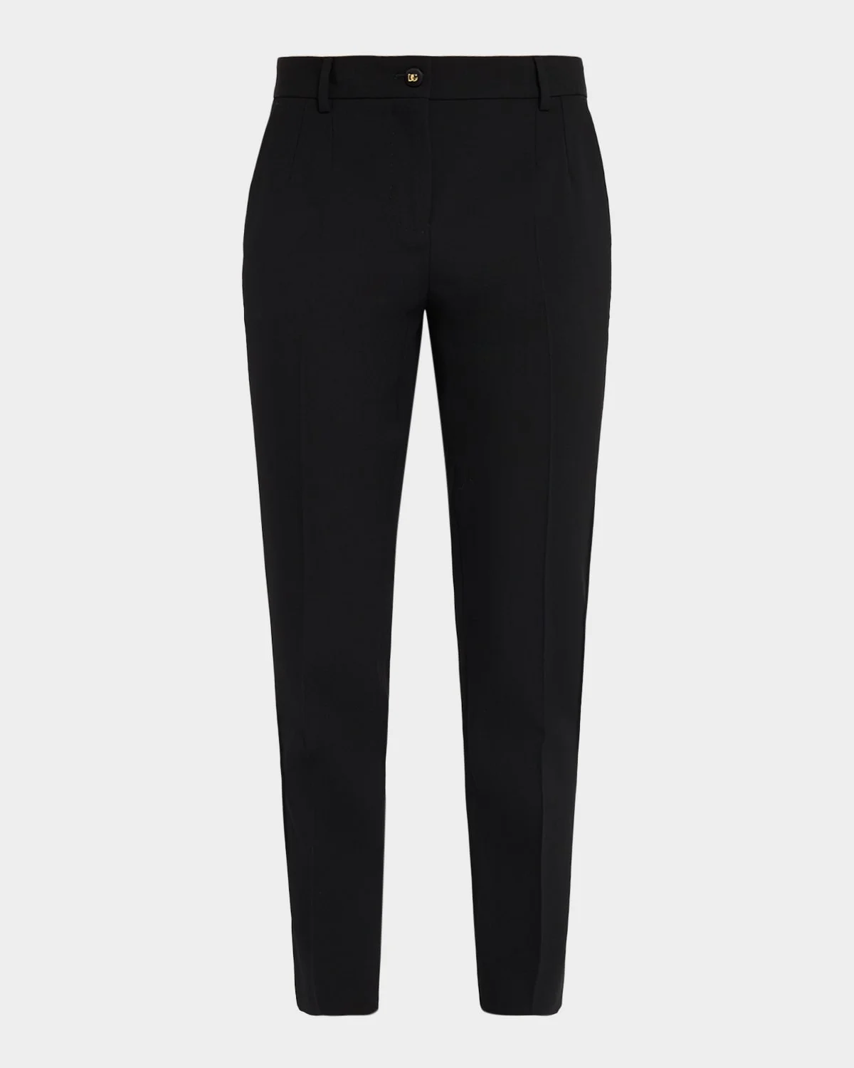 Crafted from a stretch wool-silk blend, these tailored pants & nbsp;from Dolce & amp;Gabbana feature leg-elongating vertical pintuck seaming Low rise sits at hip Side slant pockets Back buttoned besom pockets Cropped at the ankle Fitted through skinny legs Button/zip fly; belt loops Virgin wool/elastane/silk Made in Italy SIZE & FITModel measurements: 5 & apos;10" tallModel is wearing a US size 4/Small