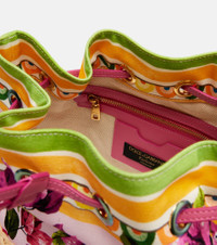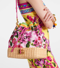 This bucket bag from the Dolce&Gabbana Taormina collection encapsulates the feeling of summer. Crafted in Italy, this leather-trimmed design showcases an all-over floral print and raffia-effect detailing. Product Details - Material: cotton, other fibers - Lining: fabric - Made in Italy - Designer color name: MYT Bouganville/ Rosa - Item color: pink, multicolor - Closure: drawstring top - Shoulder strap - Hardware color: gold - Item number: P01057180 Size & Fit - Height 27cm-10.5" - Width 24cm-9.5" - Depth 17cm-6.5" - Min. length shoulder strap 64.5cm-25.5" - Max. length shoulder strap 77cm-30.5"