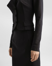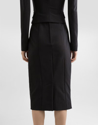The Spring/Summer 2025 Women’s Collection is celebrating Italian beauty through bold and charismatic femininity. The 50s-inspired lingerie is the star, intermingling with fitted dresses, corsets and oversize trench coats. The iconic jackets have been updated with cropped cuts and modern inserts, while the floral prints add a romantic edge. The eveningwear shines with light fabrics and crystals, accompanied by look-defining accessories, from iconic bags to the cross earrings. Technical cady calf-length pencil skirt: • Black • High-waisted • Unlined • Rear zipper and hook-and-eye fastening • The piece measures 70 cm from the waist down on a size IT 40 • The model is 175 cm tall and wears a size IT 40 • Made in Italy External composition: 90% Polyamide 10% Spandex