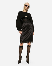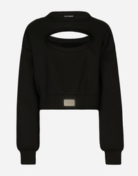 Technical jersey sweatshirt with cut-out and Dolce&Gabbana tag: • Black • Round neck • Long sleeves • Cropped fit • Fine-rib trims • The piece measures 53 cm from the rear seam on a size M • The model is 175 cm tall and wears a size IT 40 • Made in Italy Care And Details External composition: 100% Viscose