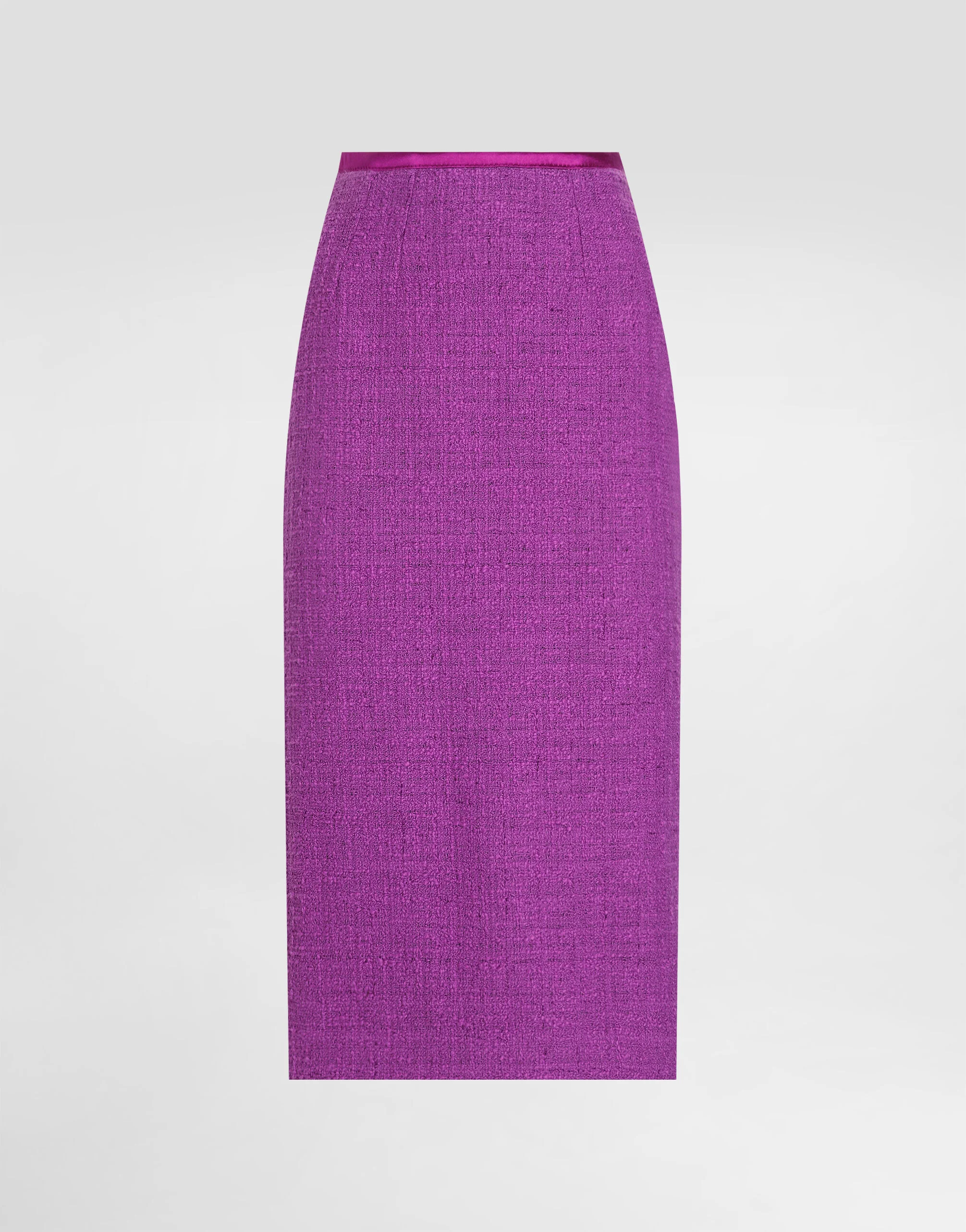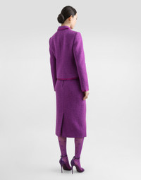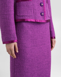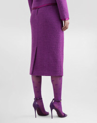 This skirt with a slit and refined details is the epitome of modern elegance. Perfect for any occasion, it stands out for its sophisticated design and quality of materials. Straight skirt in Rachel tweed: • Violet • High waist • Slit at the center back • Covered zip at the center back • Lined with tulle • Long from center back 75 cm on size 40 IT • The model is 175 cm tall and wears size 40 IT • Made in Italy External Composition: 81% Cotton, 9% Viscose, 8% Silk, 2% Polyester