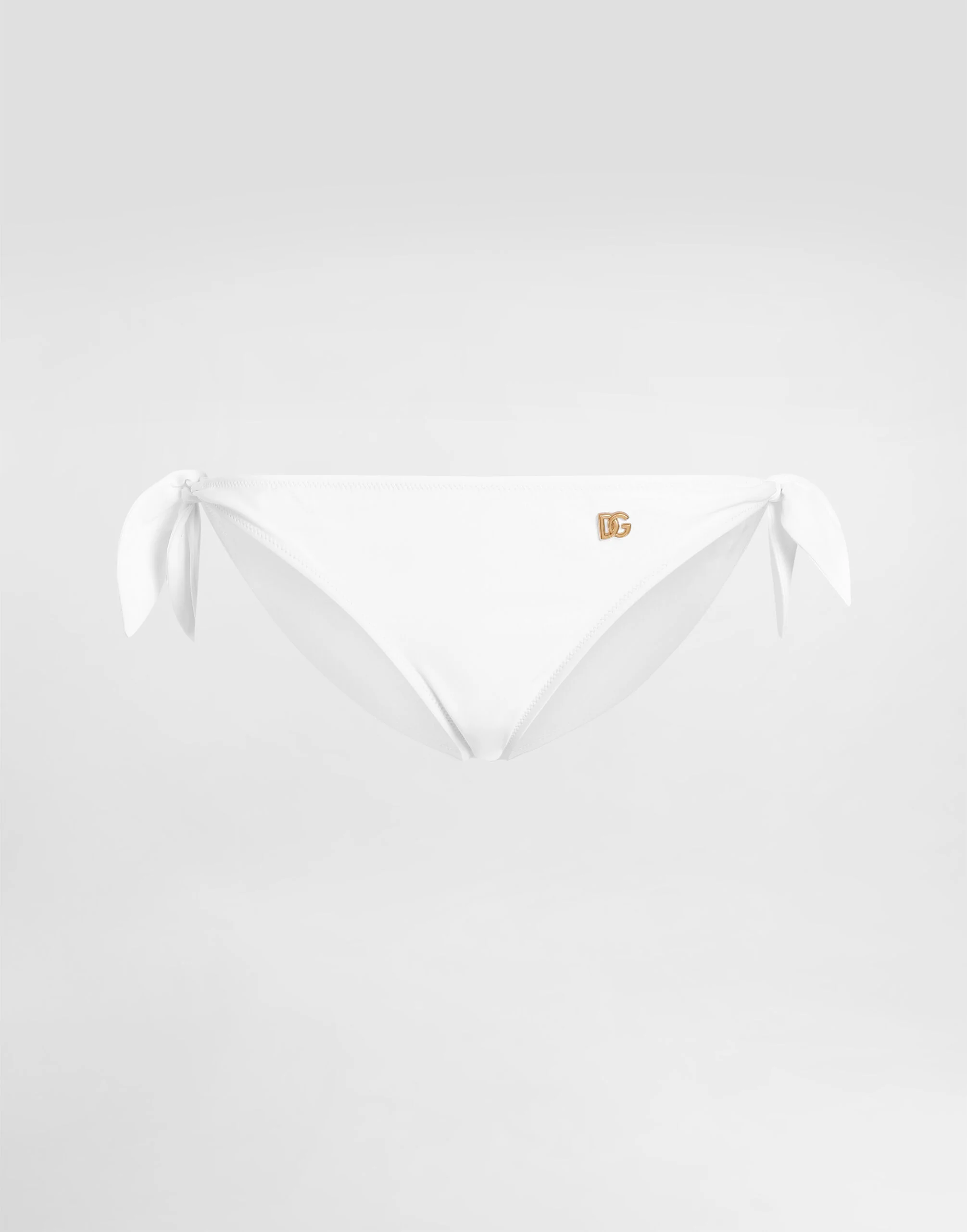 These understated bikini bottoms feature timeless allure; coming in fine spandex and offering a comfortable fit thanks to the adjustable side ties. • Regular fit • Adjustable ties on the sides • DG logo in nickel-free gold-plated metal on the front side • Matching PVC pouch • Made in Italy External composition: 75% Polyamide 25% Spandex