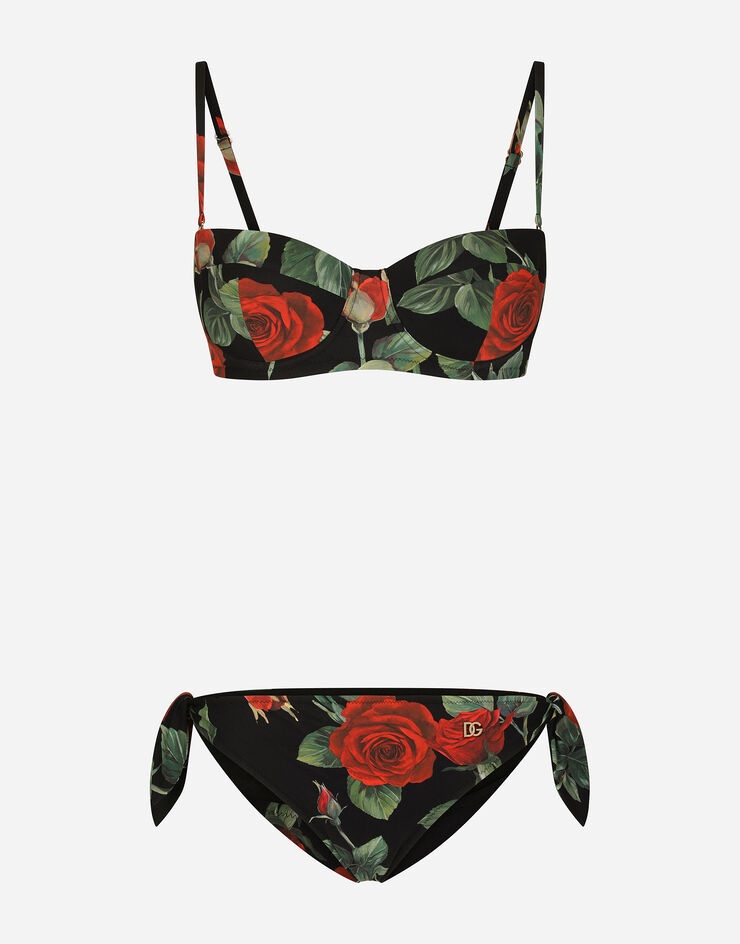 Tie bikini bottoms with rose print