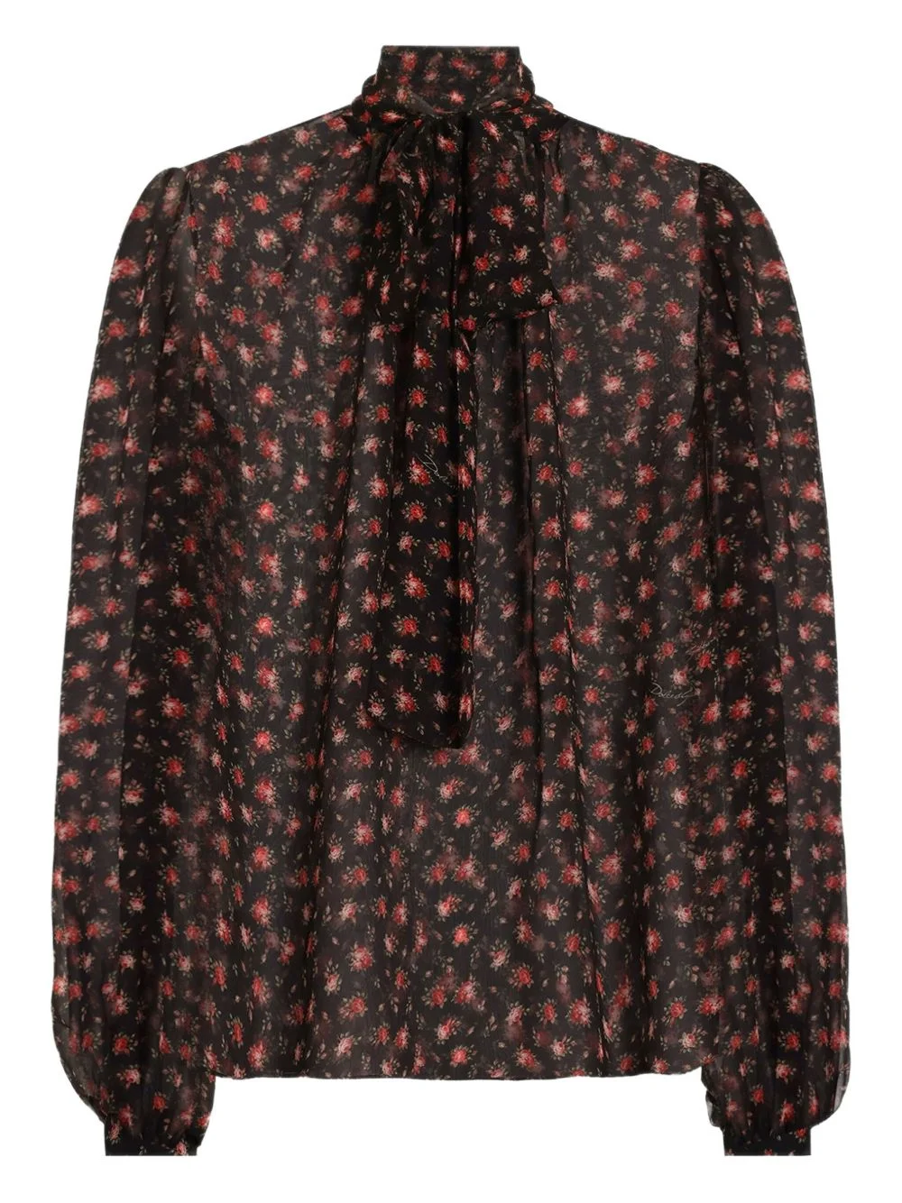 tie-neck floral blouse Highlights - Black - Floral print - Tie neck - Long sleeves Made in Italy Composition Silk 100% Washing instructions Read Manufacturer Guidelines