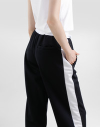 Dolce&Gabbana is creating a new DNA collection, using its style with a new concept of everyday elegance and apparel. Timeless, contemporary and traditional style, where sweatshirts, pants, T-shirts and sweaters are embellished by the DG logo, adding a touch of character to your outfits. Triacetate jogging pants with DG logo embroidery: • Black • High waist with elasticated waistband and drawstring • Contrasting satin side bands • Pockets • Inner leg: 84.50 cm • Hem: 22.50 cm • The model is 175 cm tall and wears a size IT 40 • Made in Italy External composition: 100% Polyester