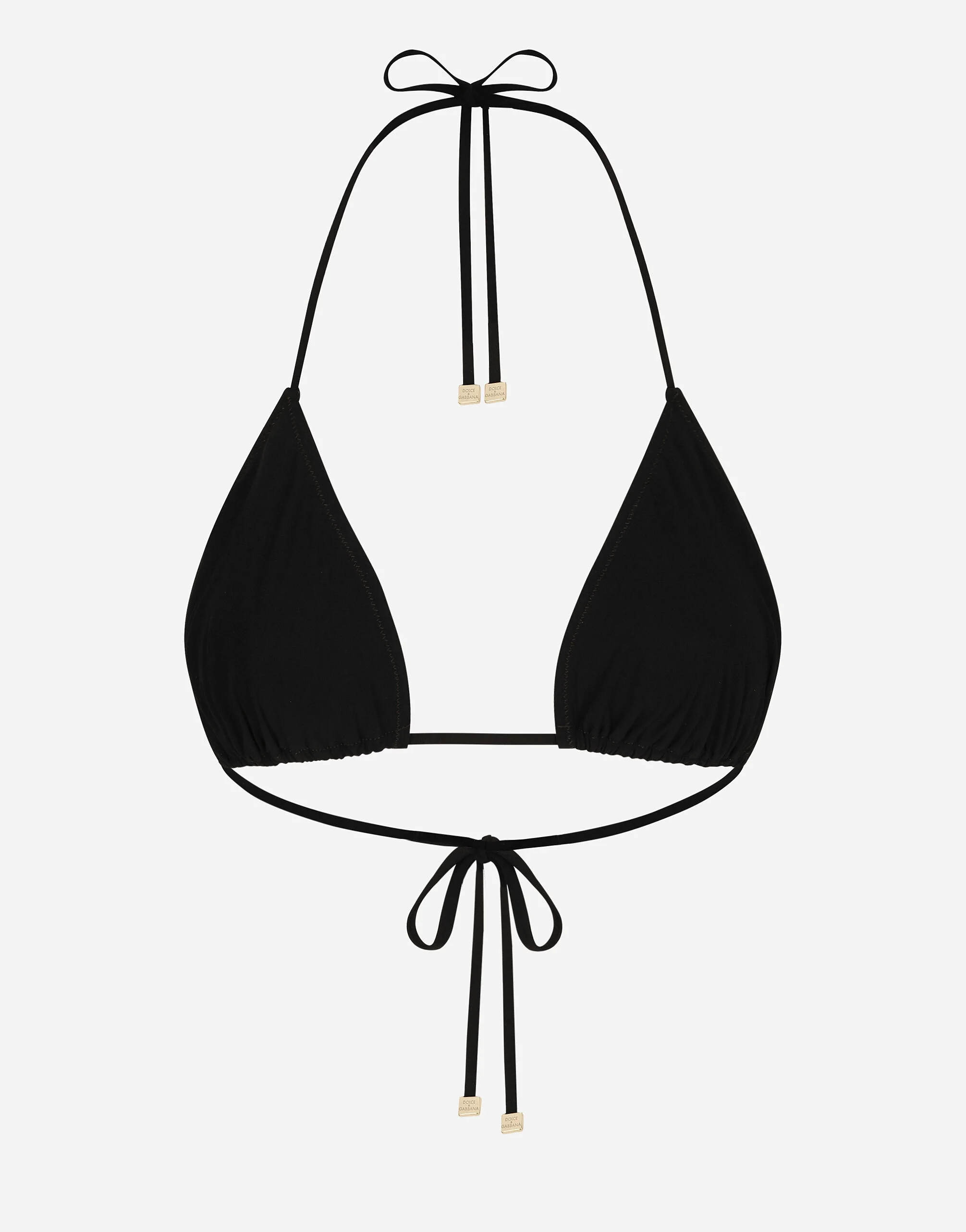 This classic triangle bikini top in classic Sicilia black offers an outstanding fit thanks to the adjustable ties and it comes in fine spandex. • Adjustable ties on the neck and back • Branded DG aglets in nickel-free gold-plated metal • Matching PVC pouch • Made in Italy External composition: 75% Polyamide 25% Spandex