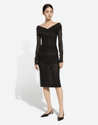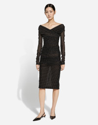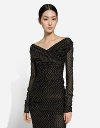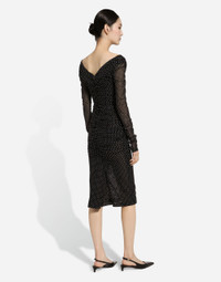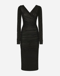 The FW24/25 Mambo Collection is rewriting the rules of Italian elegance, merging the sophisticated style of the 1940s and 1950s with the iconography of American pin-ups. The unmistakable polka-dot motif takes center stage, coming in a variety of shapes and sizes and adorning tulle, charmeuse, twill, silk and poplin, giving life to looks distinguished by black and white accessories and details. An homage to the beauty of Italy and its traditions, the distinctive details of Dolce&Gabbana’s creations. Tulle calf-length dress with draping and polka-dot print: • Black • Wrap V-neck • Long sleeves • Tulle lining • Rear zipper and hook-and-eye fastening • The piece measures 80 cm from the waist down on a size IT 40 • The model is 175 cm tall and wears a size IT 40 • Made in Italy The difference in the print placement that you may find on this product is a feature of Dolce&Gabbana’s “Handmade” pieces. A detail that makes every garment or accessory unique and exclusive. External composition: 92% Polyamide 08% Spandex Internal composition: 82% Polyamide 18% Spandex