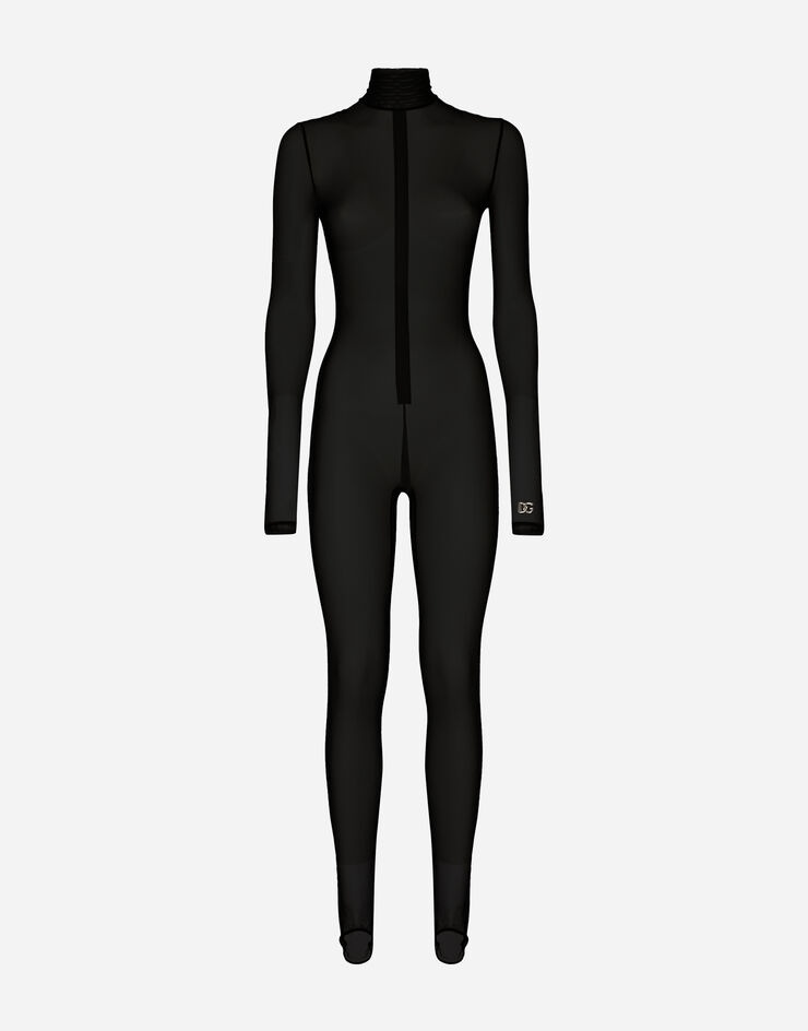 Tulle turtle-neck jumpsuit: • High neck •Long sleeves • Unlined • The model is 175 cm tall and wears a size IT 40 • Made in Italy Care And Details External composition: 55% Polyamide 40% Viscose 5% Spandex