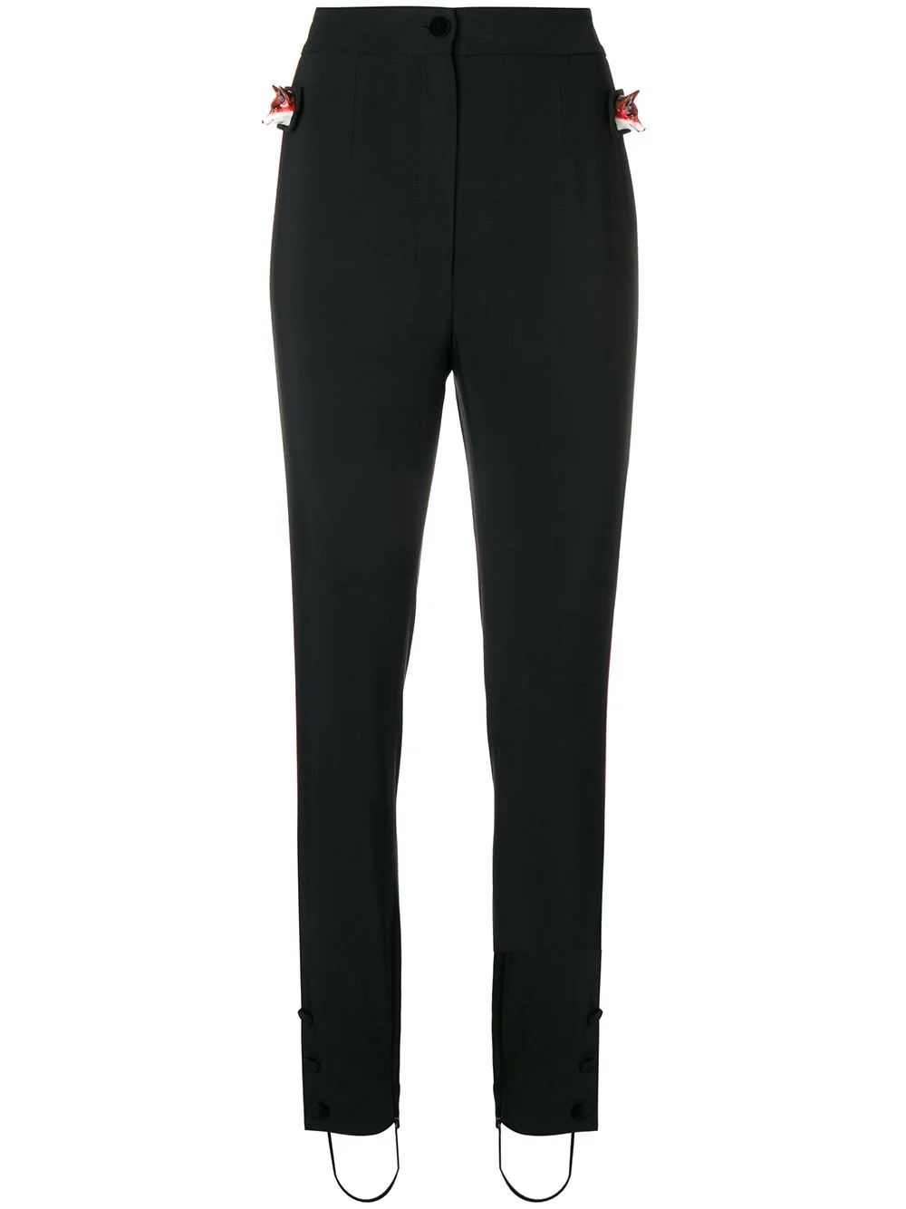 tuxedo stripe fox trim trousers Dolce & Gabbana are the height of romanticism, femininity and Italian luxury. Along with bright colours and signature floral blooms, the designers behind the iconic brand are expert in fashioning timeless essentials for the woman of any age. These black and red cotton-blend tuxedo stripe fox trim trousers from Dolce & Gabbana feature a button and zip fly, compression tabs to the sides, vertical stripes and fox-shaped button trim. Made in Italy Composition Cotton 58%, Viscose 35%, Acetate 4%, Spandex/Elastane 3% SIZE & FIT Model measurements Height 5 ft 10 in(1.78 m) Bust/Chest 33.46 in(85 cm) Hips 36.22 in(92 cm) Waist 23.22 in(59 cm) Washing instructions Dry Clean Only