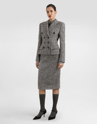 This pencil skirt is an essential item for any woman's wardrobe, combining elegance and comfort thanks to its sophisticated design and the quality of the materials used. Sheath skirt in dotted wool blend: • Multi-colored • Side slit • 5 cm high belt with DG logo at the center • Covered zip and hook closure • Lined • The model is 175 cm tall and wears size 40 IT • Made in Italy