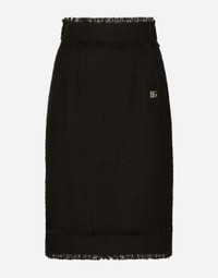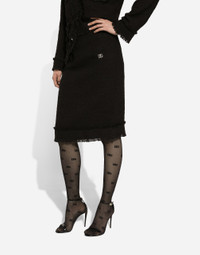The DNA collection is distinguished by timeless shapes, bringing together three concepts: Sicilian flair, tailoring and sensuality. Nero Sicilia black and optical White predominate and pair with colors that catapult us onto the island of Sicily and make us dream. The designers channel the timeless wardrobe made up of creations that are instantly unmistakable in their simplicity, presenting us with sophisticated beauty loaded with meaning and symbolism that transcends fashion. Cotton tweed midi skirt with DG logo: • Black • High-waisted • Silk satin lining • Rear vent • Rear zipper and hook-and-eye fastening • The piece measures 60 cm from the waist down on a size IT 40 • The model is 175 cm tall and wears a size IT 40 • Made in Italy External composition: 90% Cotton 10% Viscose Internal composition: 100% Silk