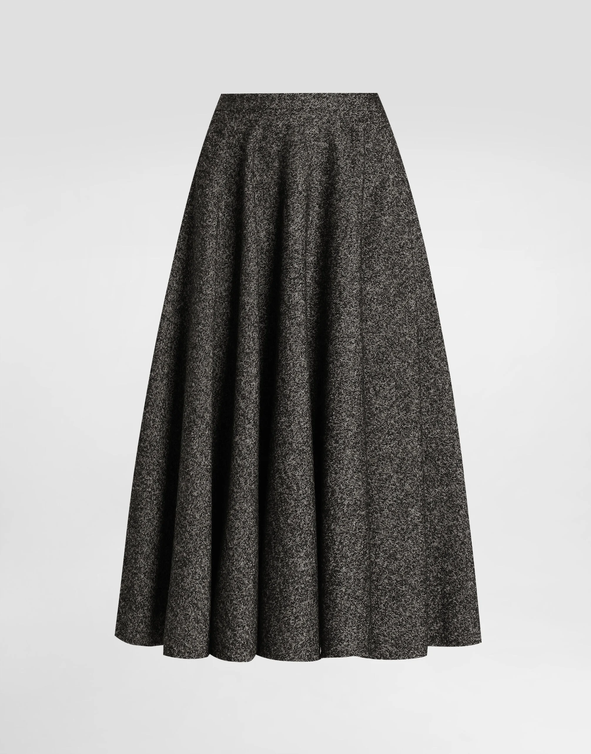 This circle skirt is a versatile and chic piece that is perfect for adding a touch of elegance to your wardrobe. With its sophisticated design and thoughtful details, it is ideal for any occasion. Wool blend dotted circle skirt: • Multi-colored • Zip closure at the center back • Lined • Center back length 75 cm on size 40 IT • The model is 175 cm tall and wears size 40 IT • Made in Italy External Composition: 48% Virgin Wool, 35% Wool, 16% Polyamide, 1% Elastane Internal Composition: 97% Polyester, 3% Elastane