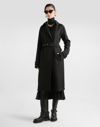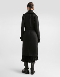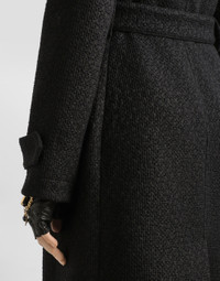 This trench coat is an essential piece for the modern woman, combining elegance and functionality with its silhouette and refined tweed fabric. Tweed trench coat: • Black • Double-breasted • Belted • Loops on the back hip • Frog fastenings at the bottom of the sleeves • Lined • The model is 175 cm tall and wears size 40 IT • Made in Italy External Composition: 67% Virgin Wool, 27% Viscose, 6% Polyamide Internal Composition: 93% Silk, 7% Elastane