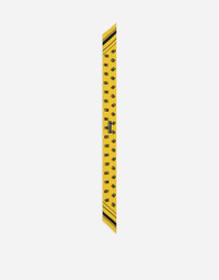The DNA collection is distinguished by timeless shapes, bringing together three concepts: Sicilian flair, tailoring and sensuality. Nero Sicilia black and optical white predominate and pair with colors that catapult us onto the island of Sicily and make us dream. The designers channel the timeless wardrobe made up of creations that are instantly unmistakable in their simplicity, presenting us with sophisticated beauty loaded with meaning and symbolism that transcends fashion. Silk twill headscarf with all-over DG logo print: • Yellow • “Dolce&Gabbana” logo • Measurements: 6 x 100 cm • Made in Italy The difference in the print placement that you may find on this product is a feature of Dolce&Gabbana’s “Handmade” pieces. A detail that makes every garment or accessory unique and exclusive. External composition: 100% Silk
