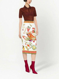 vegetable-print pencil skirt Showcasing the brand's penchant for bold patterns, Dolce & Gabbana presents this skirt. Crafted from silk-blend, this skirt features an elegant pencil silhouette and stands out thanks to its vivid vegetable print. Made in Italy Composition Silk 91%, Spandex/Elastane 9% SIZE & FIT Measurement HIPS 34.64 in(88 cm) LENGTH 31.49 in(80 cm) WAIST 26.77 in(68 cm)