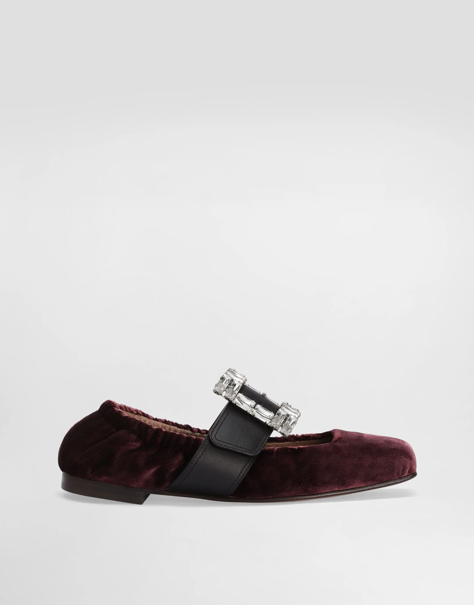 These new ballet flats come in velvet with the bejeweled buckle on the strap. Velvet DG ballet flats with bejeweled buckle: • Burgundy • Lambskin insole with debossed logo • Branded leather sole • Item comes with a branded dust bag • Made in Italy External composition: 52% Calfskin 34% Viscose 12% Cotton 2% Polyester Internal composition: 77% Lambskin 23% Goatskin