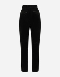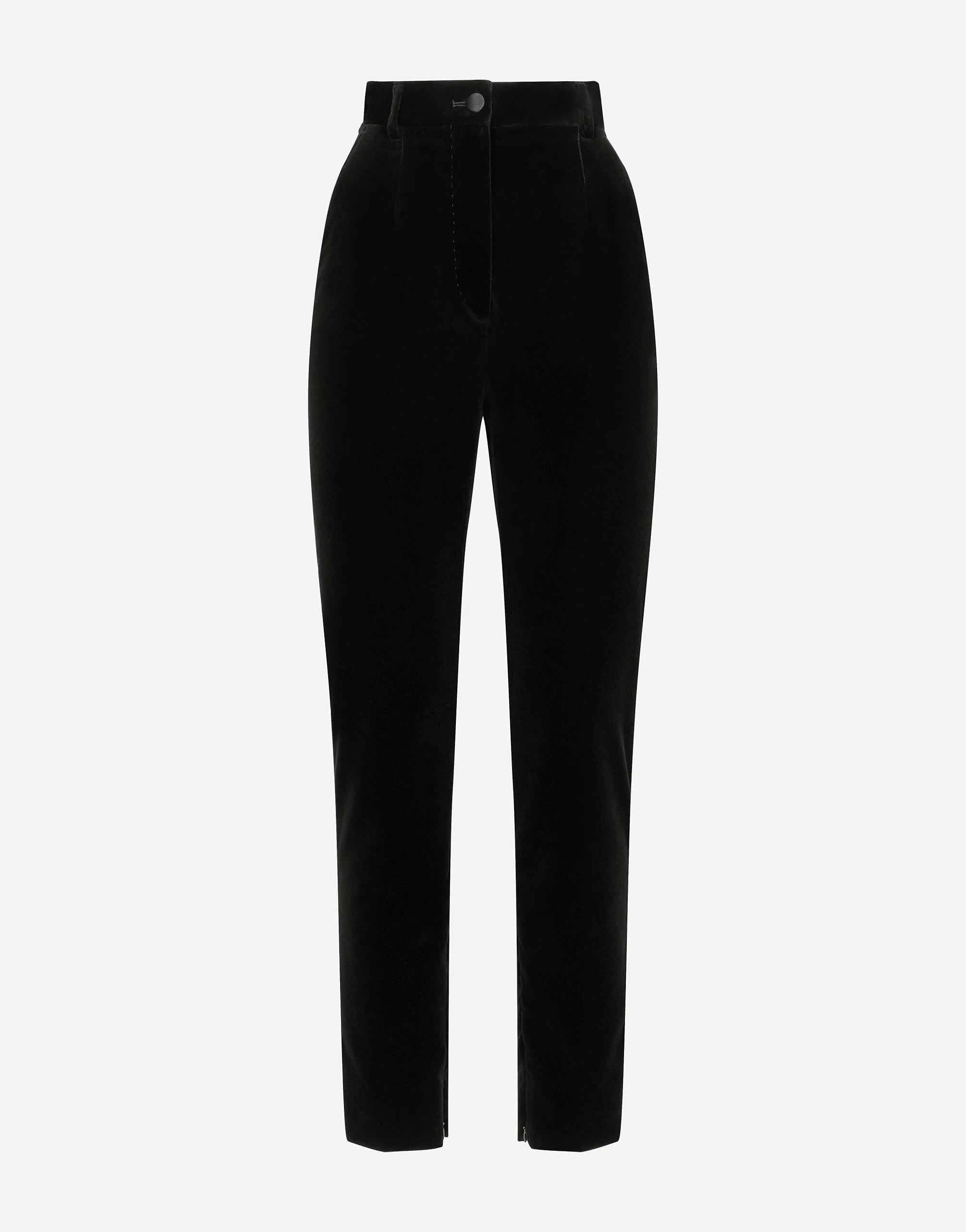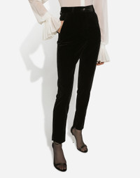 In the “WOMAN SS 24” Collection, the imagery of old Sicily interacts with the masculine, with sensual shapes, lace, nude tones and delicate overlays, to create pieces that move amid clean silhouettes, the elegance of the 1960s, the contrasts of black and white and luxurious textures. The designers are reworking their signature style and their iconic Sicilia black color to convey an aware, seductive and confident Sicilian WOMAN who is imbued with sensuality. Velvet cigarette pants: • Black • High-waisted • Front slant pockets • Welt back pockets • Inner leg: 73 cm • Hem: 15 cm with invisible zipper • Zipper and button fastening • The model is 175 cm tall and wears a size IT 40 • Made in Italy External composition: 95% Cotton 02% Polyester 03% Silk