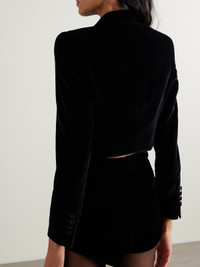 Cropped Double-breasted Satin-trimmed Velvet Blazer