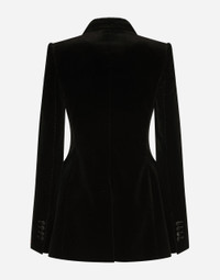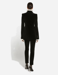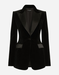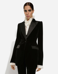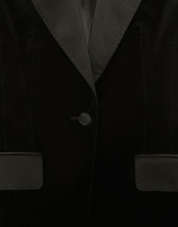 In the “WOMAN SS 24” Collection, the imagery of old Sicily interacts with the masculine, with sensual shapes, lace, nude tones and delicate overlays, to create pieces that move amid clean silhouettes, the elegance of the 1960s, the contrasts of black and white and luxurious textures. The designers are reworking their signature style and their iconic Sicilia black color to convey an aware, seductive and confident Sicilian WOMAN who is imbued with sensuality. Velvet single-breasted Turlington tuxedo jacket: • Black • Satin peak lapels • Long sleeves • Flap pockets • Silk satin lining • Covered button fastenings • The piece measures 75 cm from the center back on a size IT 40 • The model is 175 cm tall and wears a size IT 40 • Made in Italy External composition: 80% Cotton 16% Silk 04% Polyester Internal composition: 100% Silk