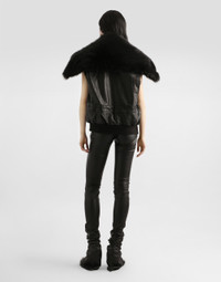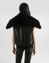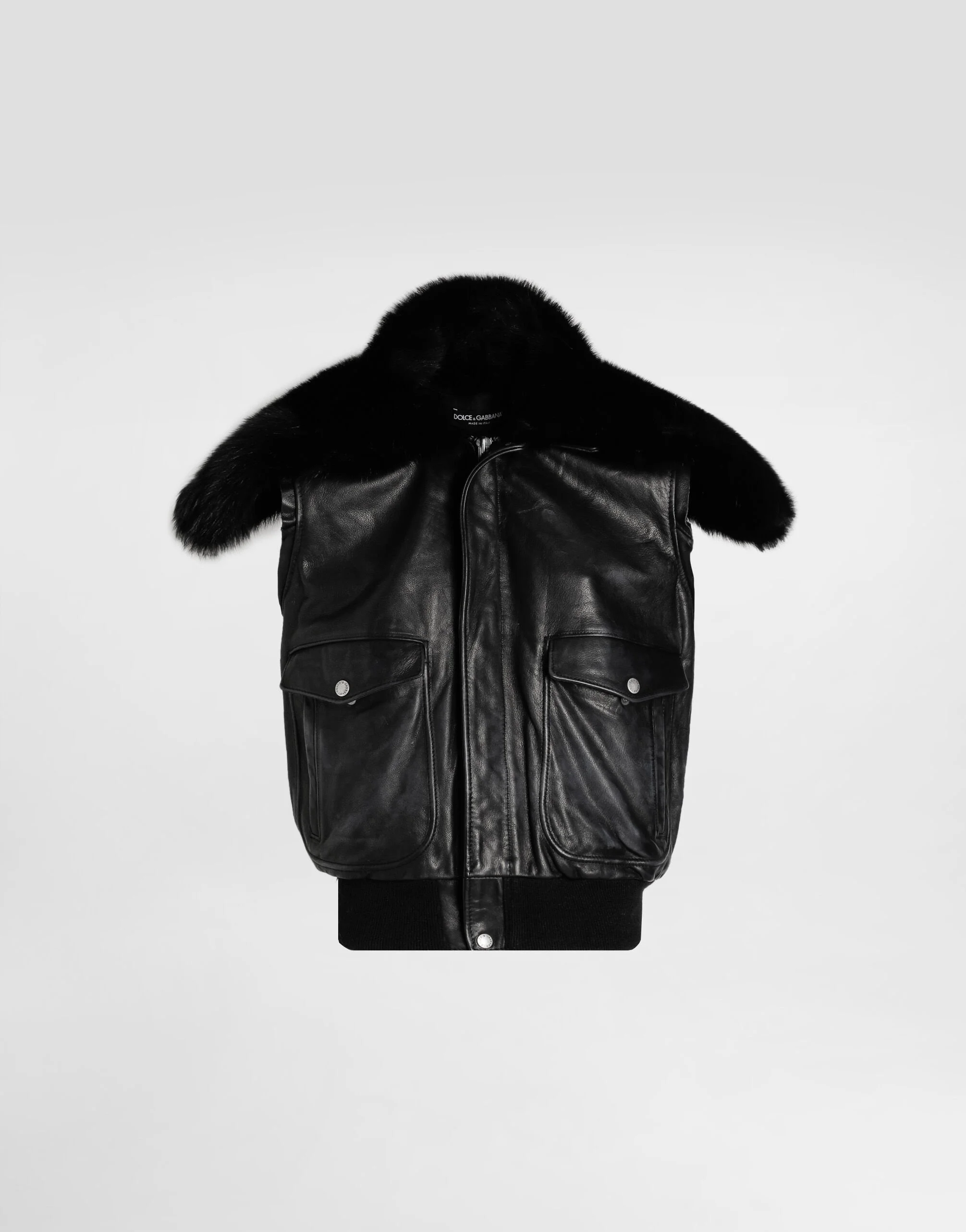 In the Fall/Winter 2025 Fashion Show Collection, shearling jackets, in fur-free versions, reveal slip dresses and create contrast' plays while denim welcomes fabric or Leo print inserts. Sweatshirts are the result of long experimentation with volumes. Evening looks become precious thanks to dresses with special embroideries and luminous touches of sequins and crystals. Sheepskin inserts also unite hats, shoes, and bags, including those with pockets. This vintage leather jacket is an essential piece for those who want a bold and sophisticated look. Its Calfskin and Lambskin workmanship, combined with a viscose lining, guarantees comfort and timeless style. Vintage leather jacket: • Black • The model is 175 cm tall and wears size 40 IT • Made in Italy External Composition: 75% Calfskin, 25% Lambskin Internal Composition: 100% Viscose