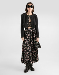 This charmeuse circle skirt, with its gathered waist design and elasticated waistband, is perfect for creating fresh and dynamic looks. The pockets inserted in the side seam and the back zip complete its practical and chic style. Vintage roses-print charmeuse circle skirt: • Multi-colored • Gathered waist • Elasticated waistband with drawstring • Side pockets • Zip closure at the center back • Unlined • Center back length under the waistband 90 cm on size 40 IT • The model is 175 cm tall and wears size 40 IT • Made in Italy The difference in the print placement that you may find on this product is a feature of Dolce&Gabbana’s “Handmade” pieces. A detail that makes every garment or accessory unique and exclusive. External Composition: 94% Silk, 6% Elastane