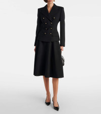 Premium materials meet an elegant silhouette with this Dolce&Gabbana skirt. The design falls to a midi length into a straight silhouette, secured with a zipped back. Product Details - Material: 100% virgin wool - Care instructions: dry clean - Made in Italy - Designer color name: Nero - Item color: black - Pockets: side slit pockets - Closure: zipped back - Item number: P01041124 Size & Fit - True to size - Non-stretchy fabric - High-waisted - The model seen in the picture is 178cm-5'10" and wearing a size IT 40