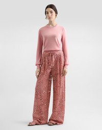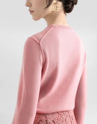 The Women’s DNA Collection is introducing a new side to femininity, which comes in shades of rose quartz, poised between sheerness and opacity, lightness and structure, formality and sensuality. Geometric Dolce Jackets, jacquard pajamas and floral brocade dresses intertwine with ultra-romantic designs. The DG print becomes an iconic statement, while Cordonetto lace and hints of Sicily Black embody the essence of a determined yet romantic femininity. Cashmere sweater with inside-out seams: • Pink • 12-gauge knit • Round neck • Long sleeves • Ribbed neck and hem • Regular fit • The piece measures 60 cm from the shoulder seam on a size IT 40 • The model is 175 cm tall and wears a size IT 40 • Made in Italy External composition: 100% Cashmere