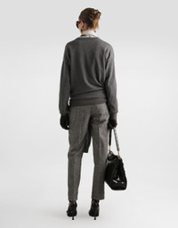 These trousers are the perfect balance of elegance and comfort, ideal for completing a sophisticated look. Wool trousers with dotted print: • Multi-colored • Cigarette line • Dolce waist • Inner belt • Lined • Center back length 74 cm on size 40 IT • The model is 175 cm tall and wears size 40 IT • Made in Italy External Composition: 98% Virgin Wool, 2% Elastane