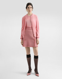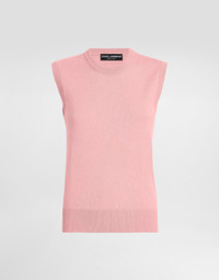 The Women’s DNA Collection is introducing a new side to femininity, which comes in shades of rose quartz, poised between sheerness and opacity, lightness and structure, formality and sensuality. Geometric Dolce Jackets, jacquard pajamas and floral brocade dresses intertwine with ultra-romantic designs. The DG print becomes an iconic statement, while Cordonetto lace and hints of Sicily Black embody the essence of a determined yet romantic femininity. Cashmere tank top with inside-out seams: • Pink • 12-gauge knit • Round neck • Sleeveless • Ribbed neck and hem • Regular fit • The piece measures 60 cm from the shoulder seam on a size IT 40 • The model is 175 cm tall and wears a size IT 40 • Made in Italy External composition: 100% Cashmere