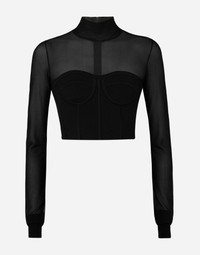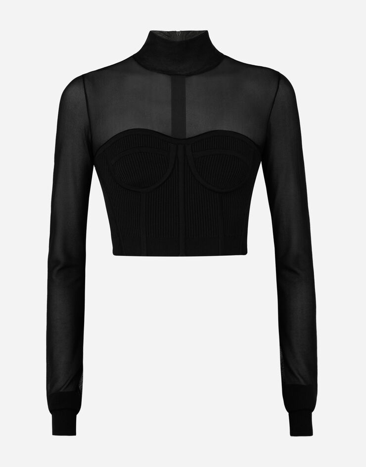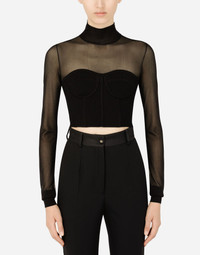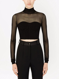 With this collection, Dolce&Gabbana is enhancing the image of a strong, confident woman, in which the word sensuality is the star of every garment. This cropped sweater with stylish bustier detailing will highlight all your femininity: • 18-gauge knit • High neck • Long sleeves • Slim fit • Fine-rib trims • Zipper fastening at the back • The model is 175 cm - 68.9 inches tall and wears a size IT 40 • Made in Italy Care And Details External composition: 78% Viscose 12% Polyester 09% Polyamide 01% Polyurethane