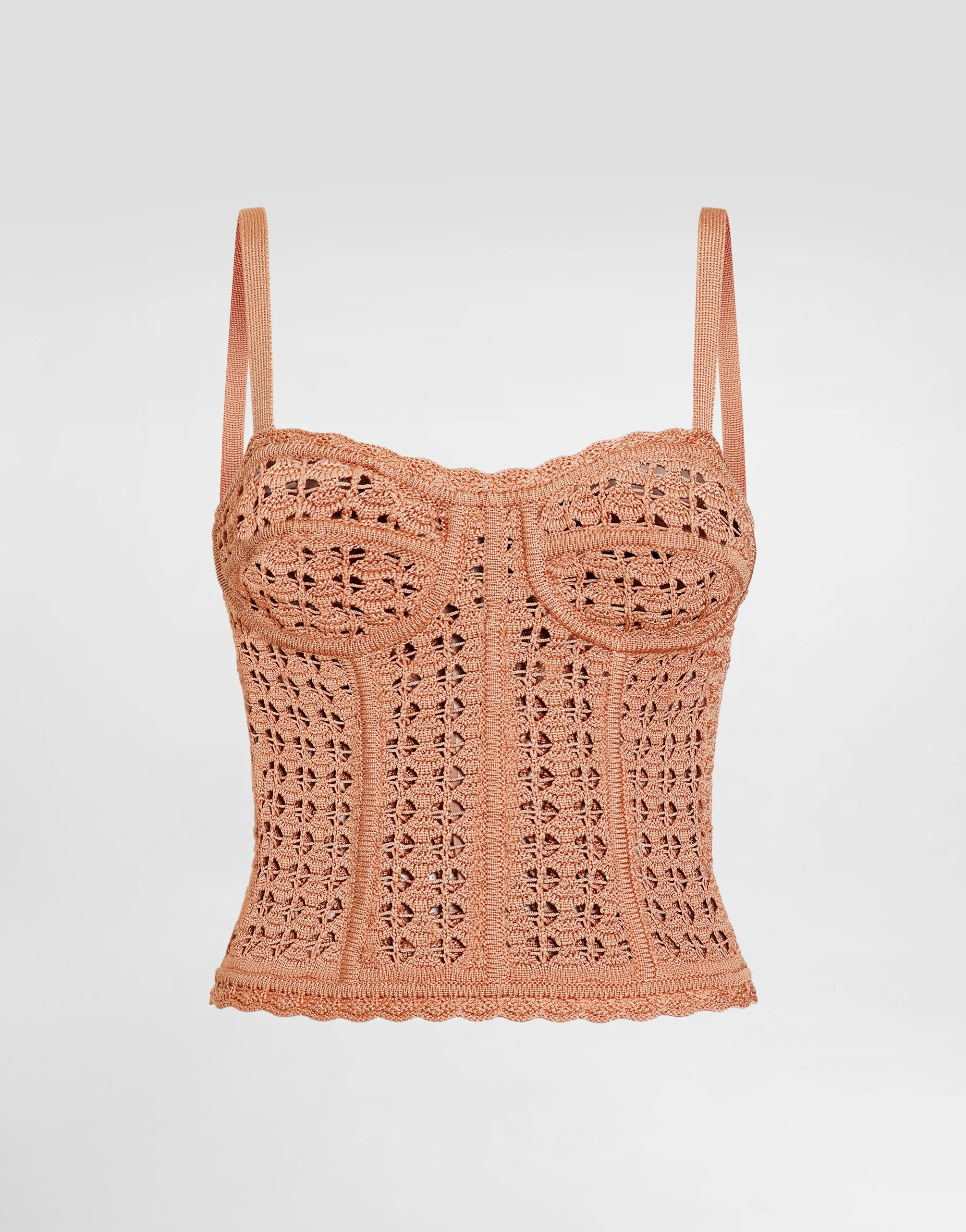 Discover the timeless charm of this viscose bustier tank top, perfect for an elegant and refined summer look. Viscose bustier tank top: • Pink • The model is 175 cm tall and wears size 40 IT • Made in Italy External Composition: 88% Viscose, 12% Elastane
