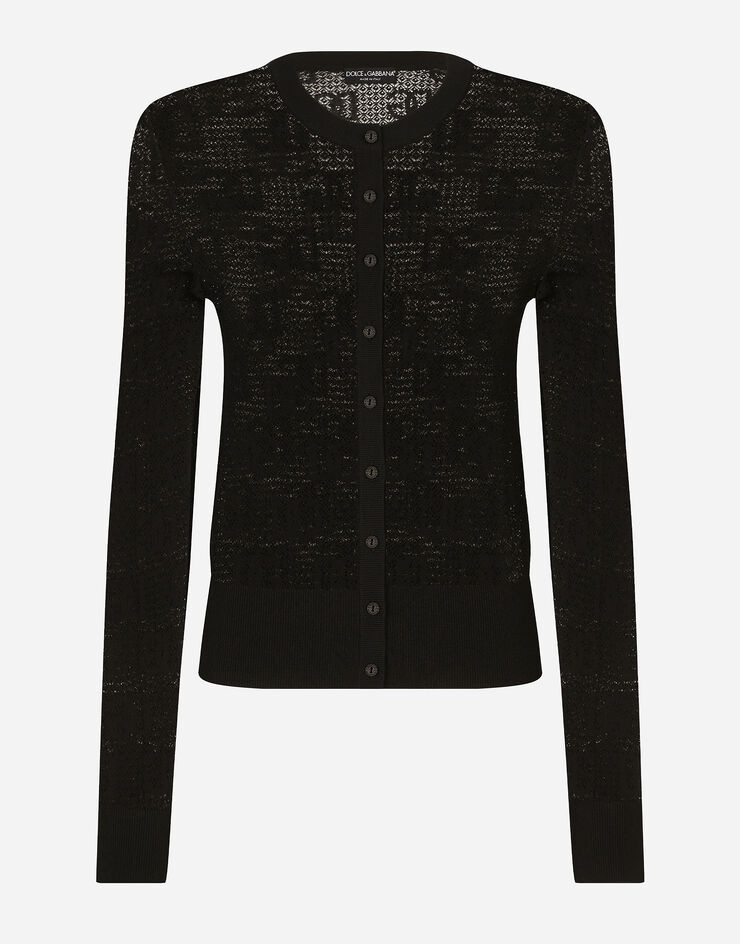 • 18-gauge knit • Round neck • Long sleeves • Slim fit • Fine-rib trims • Mother-of-pearl button fastenings with branded bottom edge • The piece measures 55 cm from the shoulder seam on a size IT 40 • The model is 175 cm tall and wears a size IT 40 • Made in Italy Care And Details External composition: 96% Viscose 4% Polyester